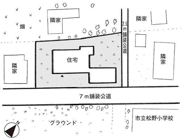 | 接道2 | 方角:北、幅員:2.5m |